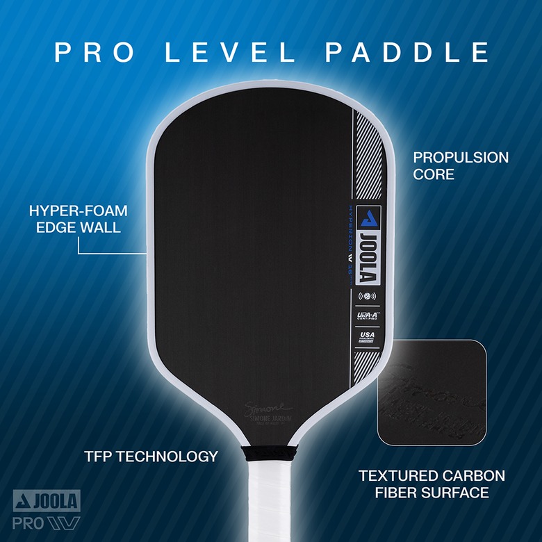The JOOLA Ben Johns Hyperion Pro IV 16mm pickleball paddle is UPA-A pro certified and USAP PBCoR .43 certified.
